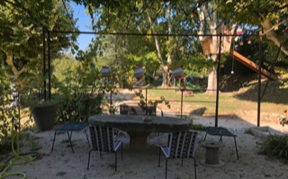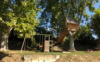 De vastes espaces extérieurs permettent de profiter du bon air de Provence. Une cabane dans les arbres, un trampoline, des balançoires, un toboggan, permettent aux enfants de plonger dans un univers ludique.